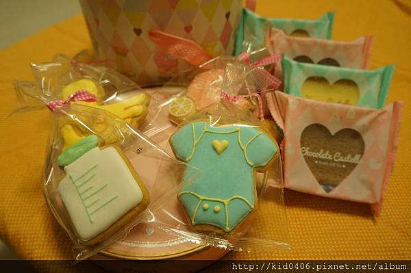 ↑先來介紹一下這四款造型餅乾的口味,小鴨鴨為酸酸的檸檬口味,包屁衣為甜甜的楓糖口味,奶瓶為濃濃的牛奶口味,嬰兒車則為淡淡的杏仁口味