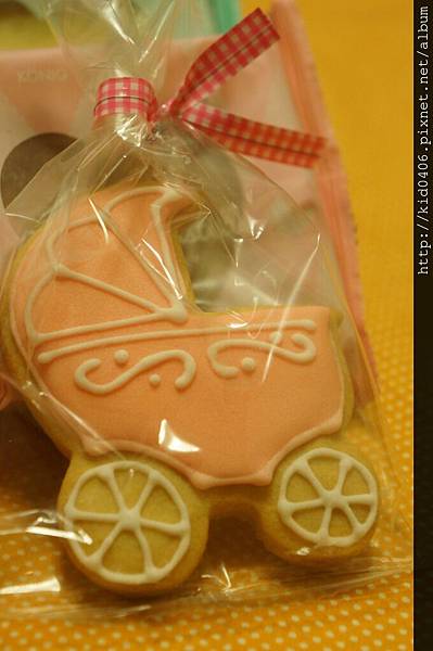 ↑嬰兒車,杏仁口味,小baby的代步工具,爸爸媽媽的好幫手,嬰兒車上的圖案都是手工彩繪得喔~~非常的細緻,餅乾非常扎實厚實,有著淡淡的杏仁味,糖霜則甜而不膩,搭配起來,非常融洽,顛覆我對『糖霜』有著甜膩膩的刻板印象